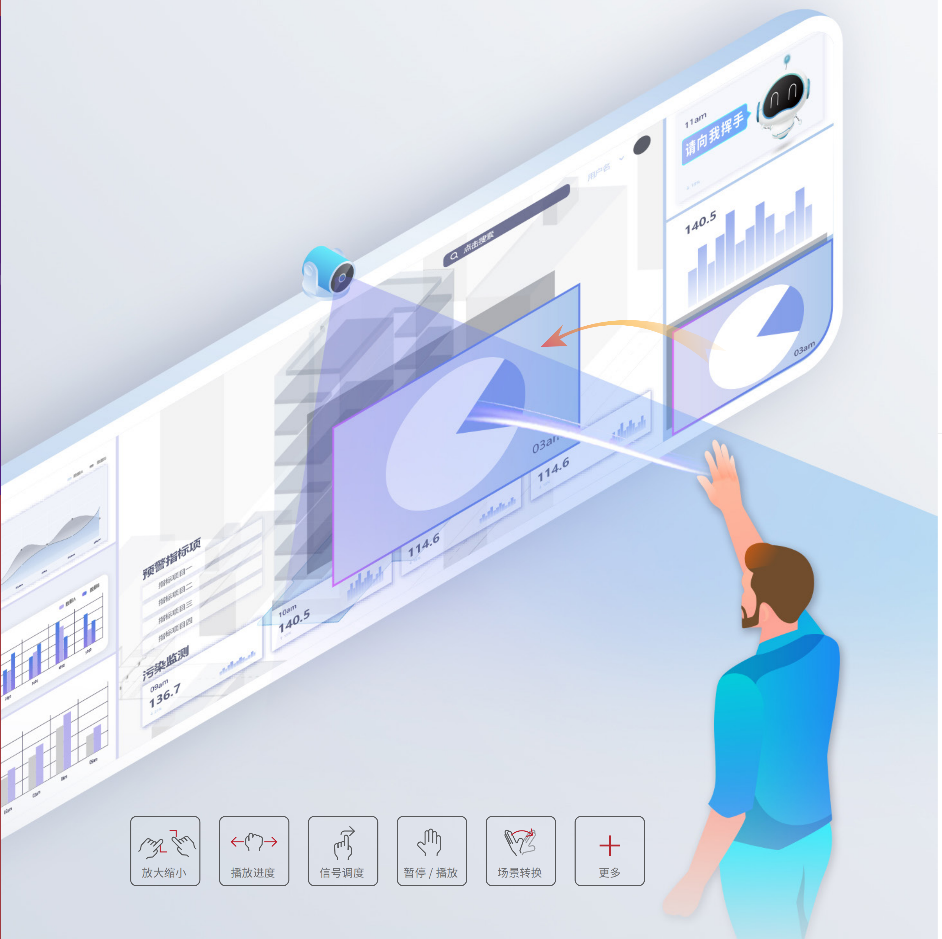 無需穿戴任何設(shè)備,城市管理者通過魅視科技AI體感控制技術(shù),揮手間便可實(shí)時接管大屏控制權(quán),實(shí)現(xiàn)多場景模式切換,信號全方位操作等高效人機(jī)交互;