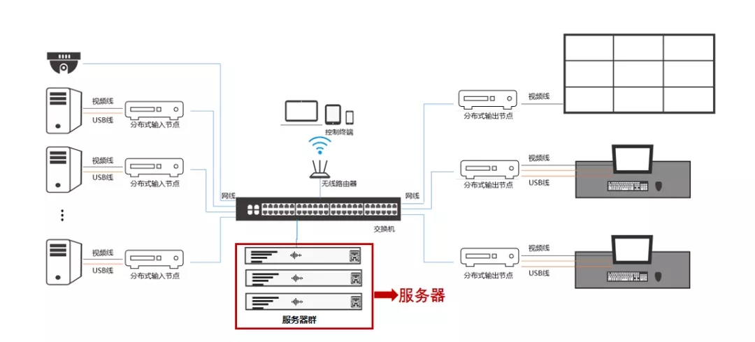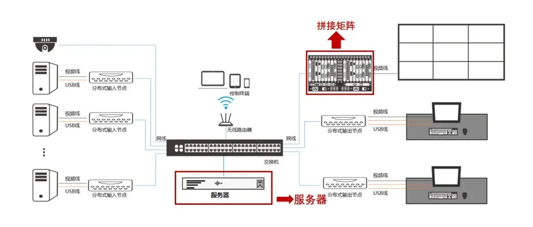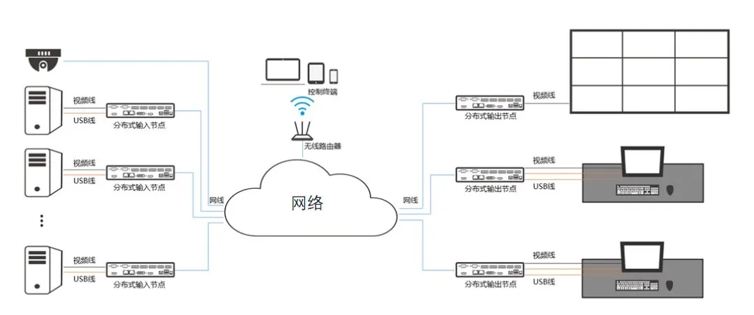 第一種無縫融合,無需外加任何額外設備。優點是完全打通,上屏信號數量、種類(各種格式碼流)、平臺類型都沒什么限制。但要求節點核“芯”能力強,且軟件復雜,必須經過大量項目部署檢驗;