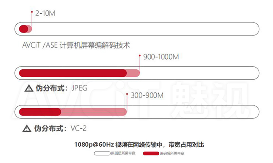 拔本塞源,AVCiT魅視圍繞現(xiàn)有H.265并投入大量的時間進行研發(fā),最終實現(xiàn)了對編碼技術(shù)的二次升級開發(fā),成功首創(chuàng)研發(fā)出業(yè)內(nèi)獨有的“ASE計算機屏幕編碼技術(shù)”——新技術(shù)的引入,實現(xiàn)“原圖畫質(zhì) 2-10M超低碼率傳輸”,并解決“在一條千兆網(wǎng)絡(luò)上傳輸50路4:4:4高質(zhì)量信號”的行業(yè)技術(shù)瓶頸,讓用戶不必再面對“圖像質(zhì)量與算法、碼率與帶寬”之間魚和熊掌不可兼得的兩難局面。