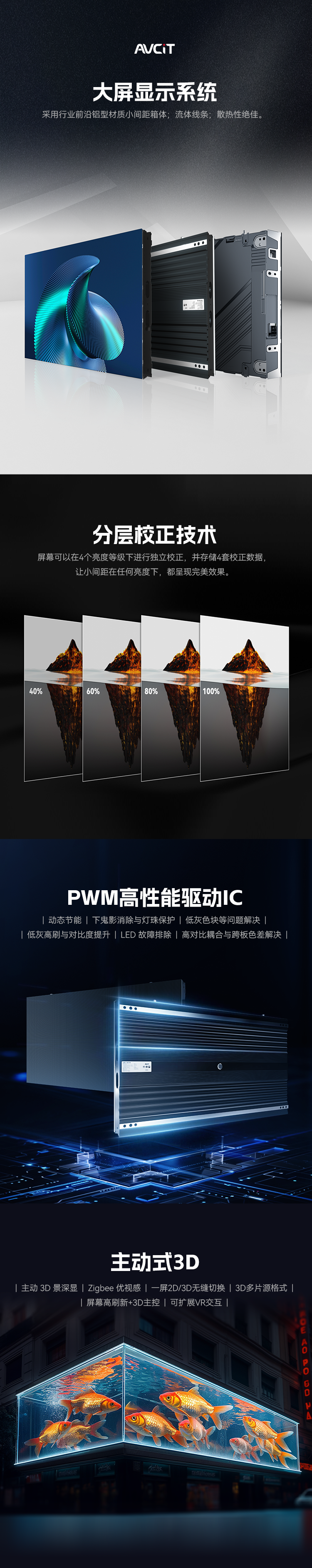 采用行業前沿鋁型材質小間距箱體;流體線條;散熱性絕佳。