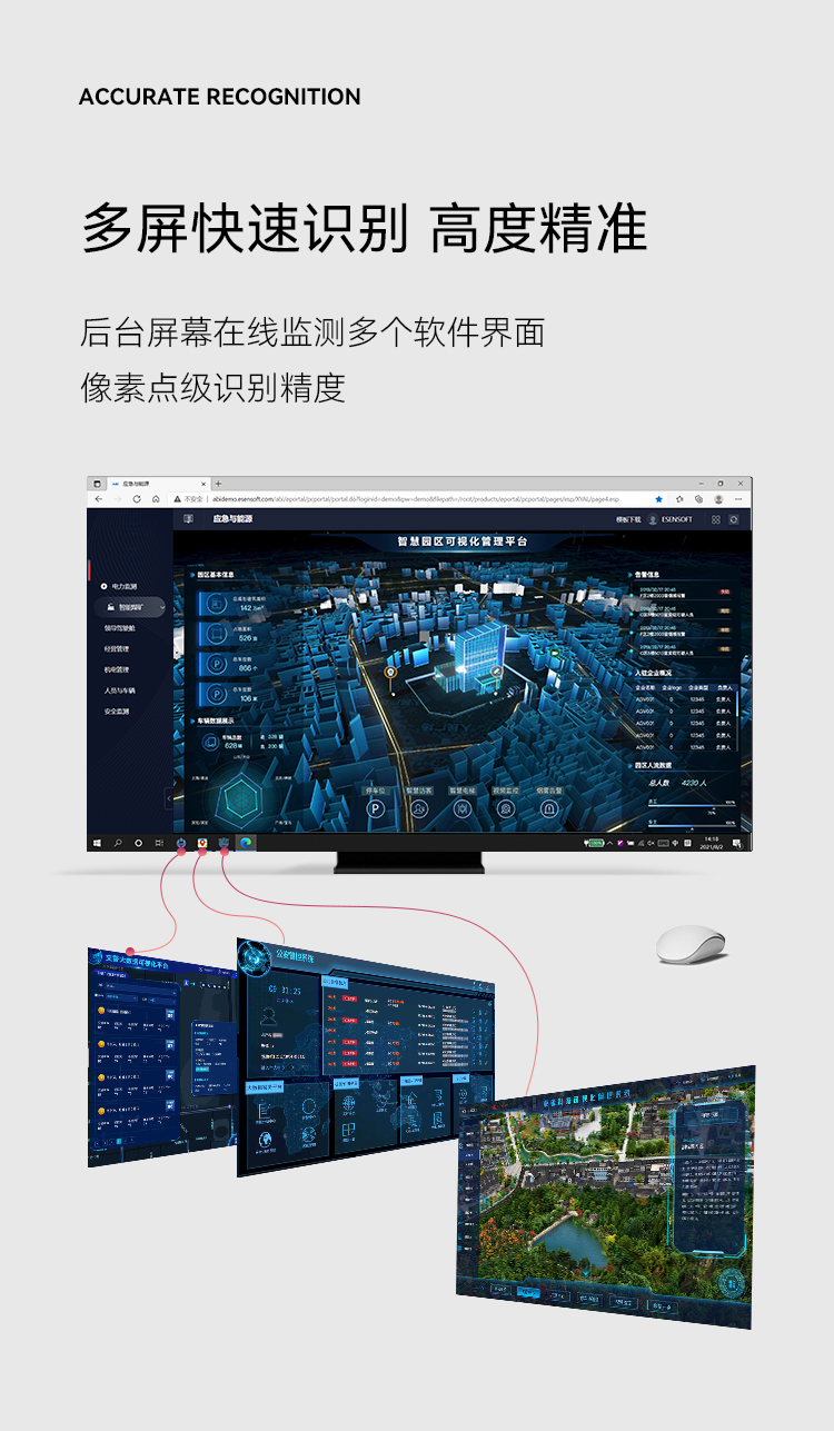 后臺屏幕在線監測多個軟件界面,像素點級識別精度。