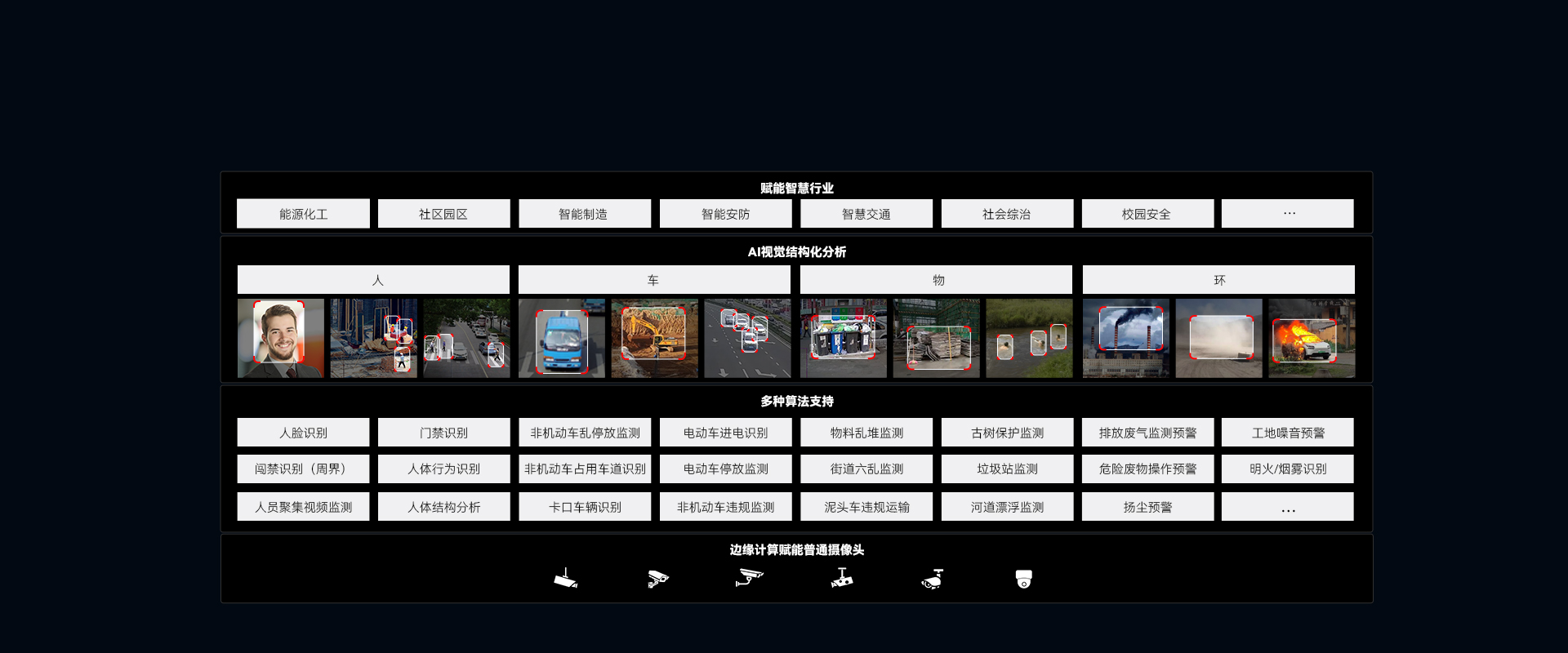 適配智慧安監、智能安防、智慧交通、智能制造等多領域場景需求,適用于多種復雜環境。