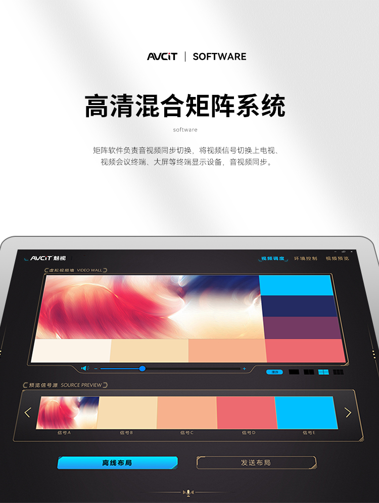 矩陣軟件負責音視頻同步切換,將視頻信號切換上電視、視頻會議終端、大屏等終端顯示設備,音視頻同步。