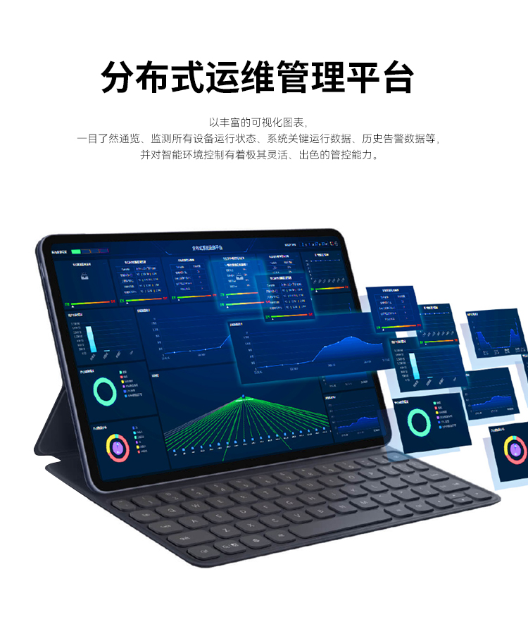 以豐富的可視化圖表,一目了然通覽、監(jiān)測所有設(shè)備運行狀態(tài)、系統(tǒng)關(guān)鍵運行數(shù)據(jù)、歷史告警數(shù)據(jù)等,并對智能環(huán)境控制有著極其靈活、出色的管控能力。