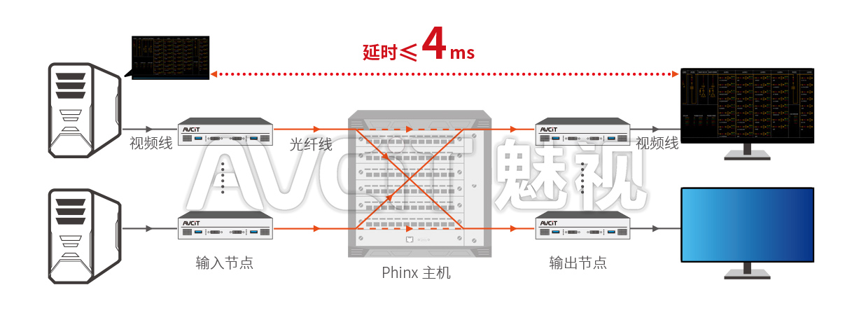 低延時(shí)實(shí)時(shí)顯示、操作流暢為保障電網(wǎng)調(diào)度控制中心全天候不間斷運(yùn)行情況下,最大限度的降低調(diào)度席位操作員的疲勞度,Phinx系統(tǒng)實(shí)現(xiàn)了接近導(dǎo)線直接連接的效果,避免了顯示延時(shí)大以及由此導(dǎo)致的鼠標(biāo)指向不精準(zhǔn)、鼠標(biāo)漂移等現(xiàn)象;Phinx系統(tǒng)實(shí)現(xiàn)了接管任意分辨率信號(hào)不閃屏、不黑屏情況下,端到端延時(shí)≤ 4 毫秒。 | ![]() |