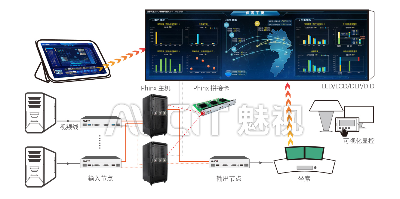 Phinx系統(tǒng)無(wú)需額外配置拼接器即可實(shí)現(xiàn) DLP、LED、液晶屏等的拼接功能,支持任意分辨率大屏幕的拼接。既減少了設(shè)備數(shù)量,也降低了信號(hào)轉(zhuǎn)換次數(shù),從而增加了系統(tǒng)穩(wěn)定性。系統(tǒng)拼接控制軟件支持 window 系統(tǒng)、B/S 架構(gòu)或者 iPAD 設(shè)備等,所有信號(hào)以及大屏均支持回顯,可實(shí)現(xiàn)可視化投屏和可視化監(jiān)視。相比其他廠商單獨(dú)配置拼接器的方案,本方案僅需在Phinx主備主機(jī)插入拼接卡,和全冗余形成一個(gè)整體,即可實(shí)現(xiàn)不僅坐席全冗余高可靠,拼接系統(tǒng)同樣可實(shí)現(xiàn)全冗余高可靠雙備份;同時(shí)在必要時(shí),席位還可直接推送信號(hào)至大屏幕。 |