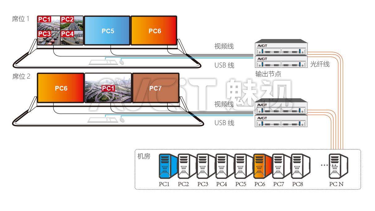 通過(guò)Phinx系統(tǒng),調(diào)度控制中心各專業(yè)坐席均可連接鍵鼠和 U盤。鍵鼠可通過(guò)熱鍵或者 OSD 菜單調(diào)用切換到對(duì)應(yīng)的工作站;U 盤可根據(jù)操作員需要打開(kāi)通道,正確識(shí)別 U 盤并進(jìn)行讀寫和安全退出。每個(gè)節(jié)點(diǎn)支持 4 個(gè) USB 口。USB數(shù)據(jù)可根據(jù)需求額外配置 USB 數(shù)據(jù)專用通信主機(jī)進(jìn)行管理。 |