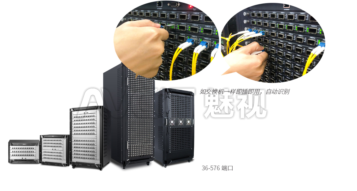 系統(tǒng)主機(jī)可根據(jù)需求從 36-576 光纖端口之間進(jìn)行配置。每一個(gè)光纖端口均為全功能端口,既能支持接入輸入節(jié)點(diǎn),也能支持接入輸出節(jié)點(diǎn)。無(wú)需在Phinx系統(tǒng)主機(jī)上進(jìn)行配置,任意輸入和輸出節(jié)點(diǎn)連接主機(jī)的方式如網(wǎng)絡(luò)交換機(jī)一樣,在任意端口上進(jìn)行即插即用,自動(dòng)識(shí)別、恢復(fù)信號(hào)。 |